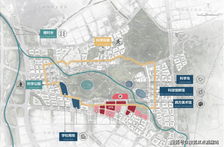 满京华项目选取了位于光明中心区规划红线范围内的楼村狮山工业区作为试点,周边紧邻科技创新文化集群,如科学岛、科技馆新馆、西方美术馆等,是光明科学环廊核心地带之一。