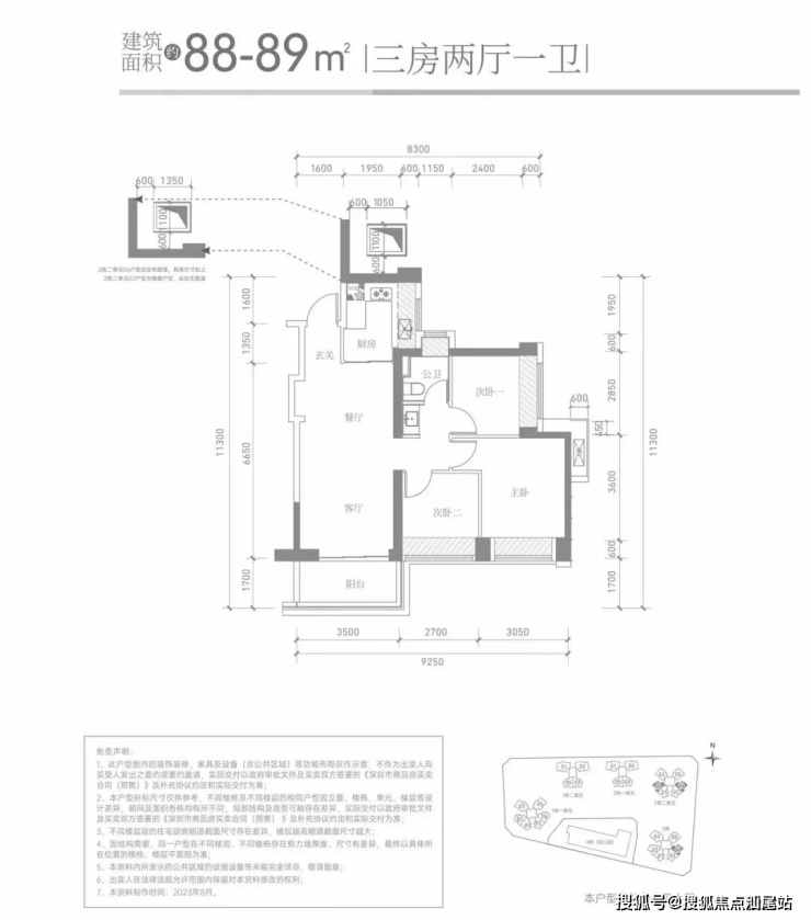 2#为3梯6户,户型为88的3套,98平的竖厅1套、横厅2套。