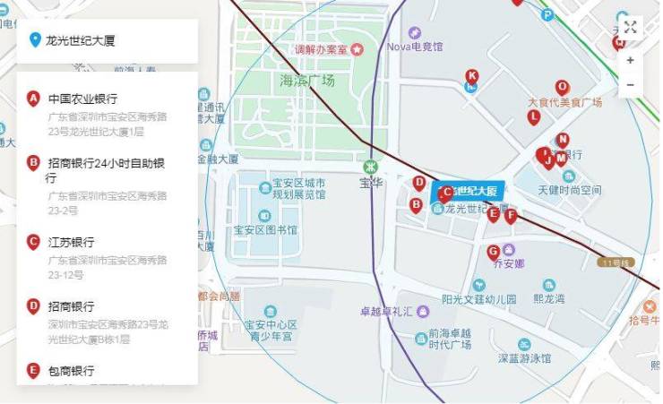 龙光世纪大厦位于宝安区宝华路与华兴路交汇处(区政府东南面),居宝安前海金融中心。是联合共赢集团在宝安CBD的一处高端写字楼项目。