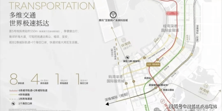 领玺4期距离5号线妈湾站约600米均在步行便捷范围之内。未来将于宝安新老中心、南山重点区、蛇口、西丽、前海片区串联起来,此外,将还有15、21、27、穗莞深城际等多条轨道交通串联前海与其他重点片区。