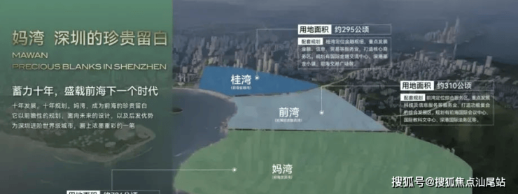 妈湾拥有山海合一资源,背靠大小南山,对望腾讯科技城,生态资源丰富。面积726.5公顷,容积率1.28-1.48,是低密生态豪宅住宅区的理想选择。官方策略是先建设配套、发展人才,再建房,促进妈湾与前湾、桂湾的协调发展。