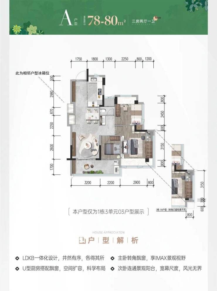 79-80㎡的3房2厅1卫,折后总价360-390万/套,单价4.55-4.87万/㎡。