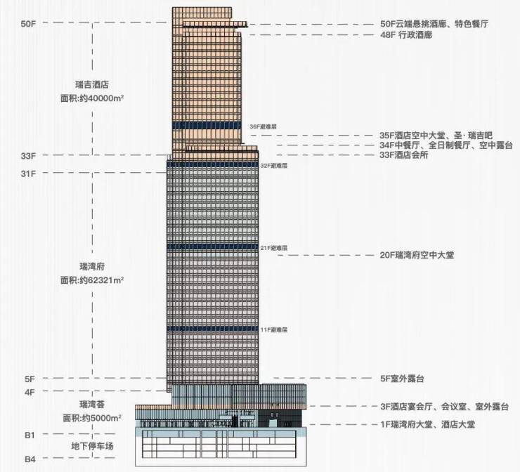 (5-19层底区,20-31层中区,33-51层瑞吉酒店)