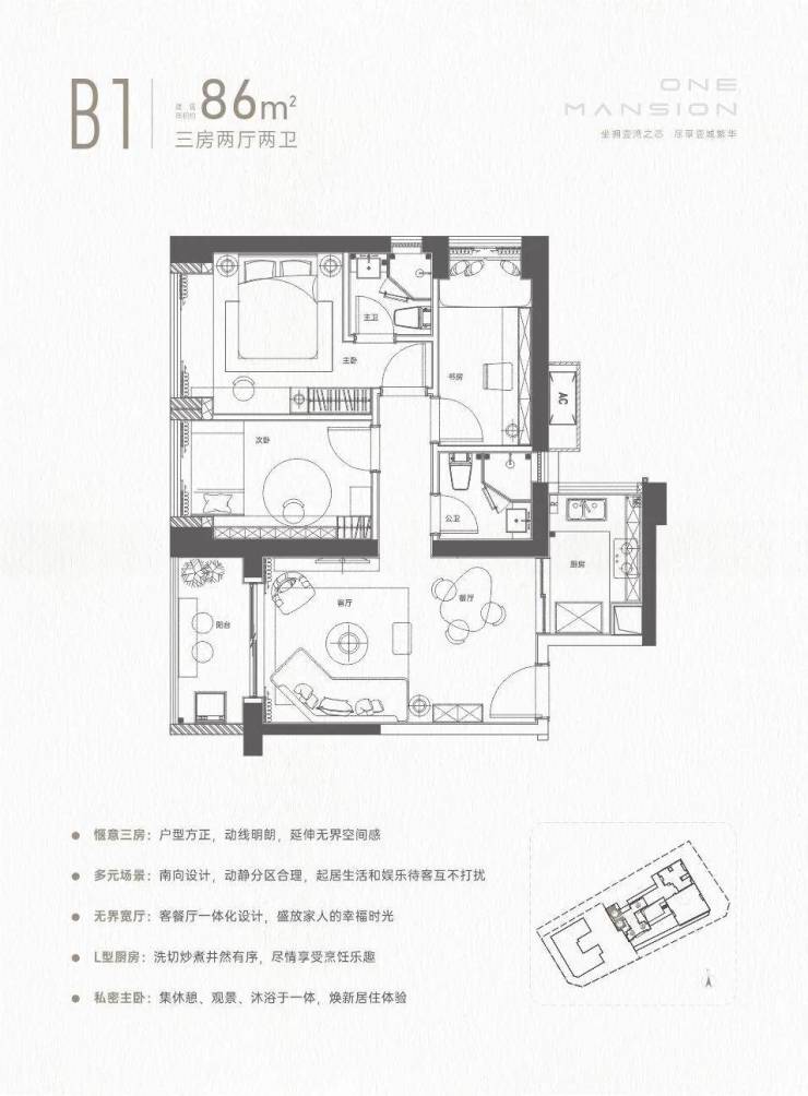 86㎡的3房2厅2卫