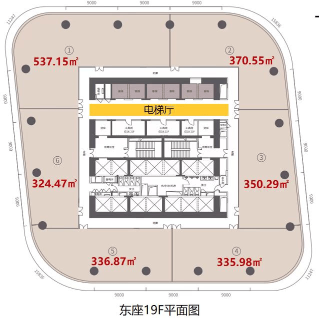 标准层面积:1900-2400㎡