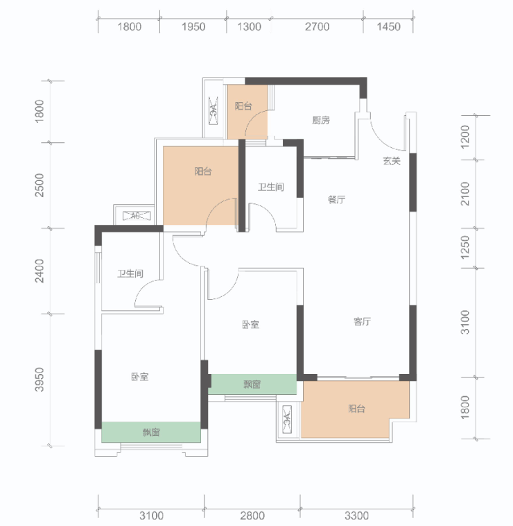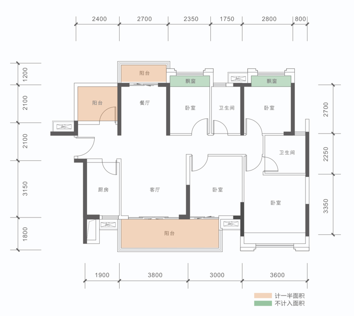 A户型: 86㎡(2+1房,2卫)同级面积稀缺双卫结构、三开间朝南