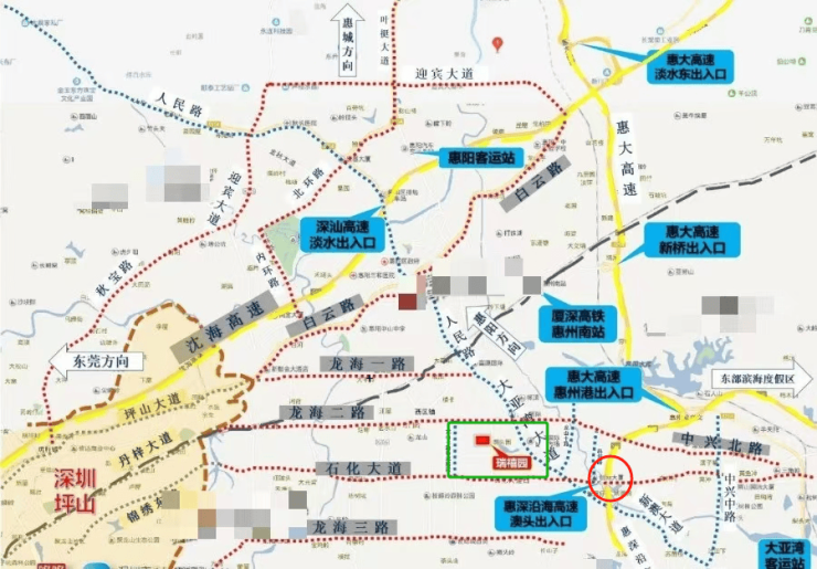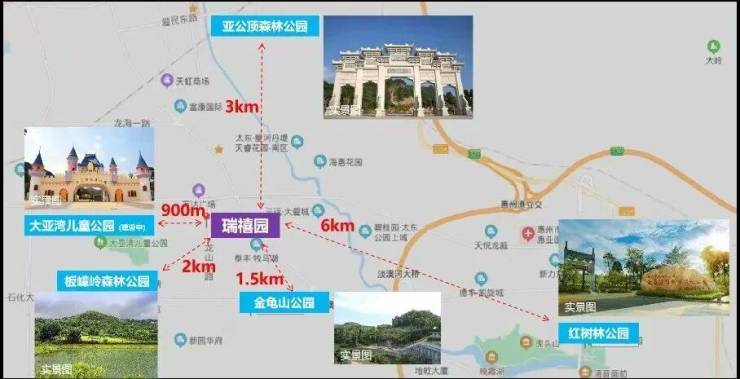 瑞禧园位于大亚湾西区龙山八路上,靠近龙海二路主干道,距离深圳坪山地界约7公里,地处惠州大亚湾繁华的万达商圈,周边众多楼盘已经建成入住,生活氛围浓厚,同时周边规划有多所学校及多个商业体,另外还有写字楼、银行、公园等多方面配套,是片区居住氛围浓厚板块。
