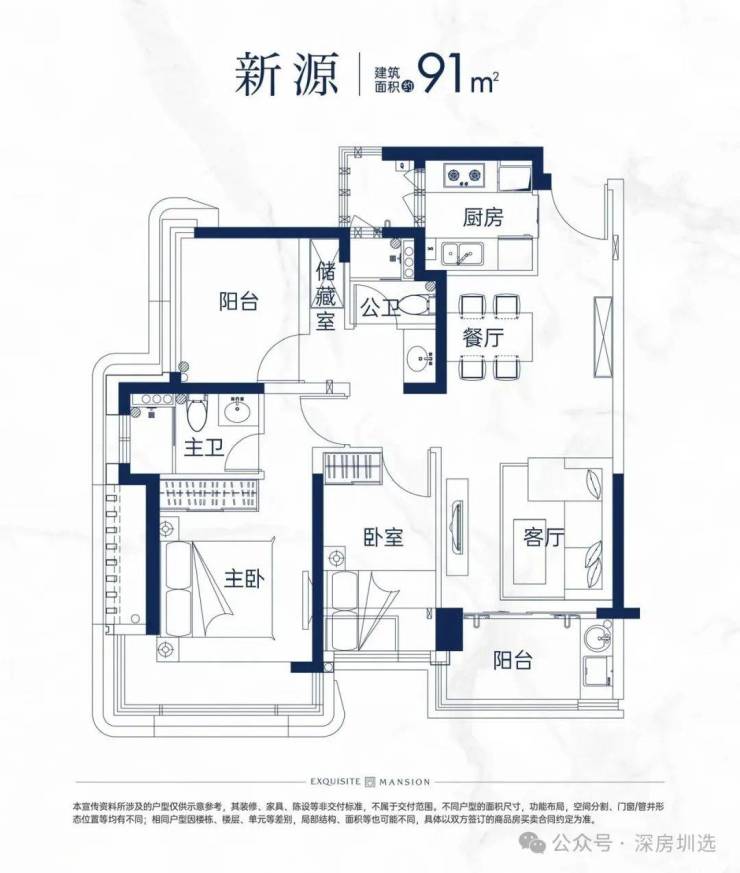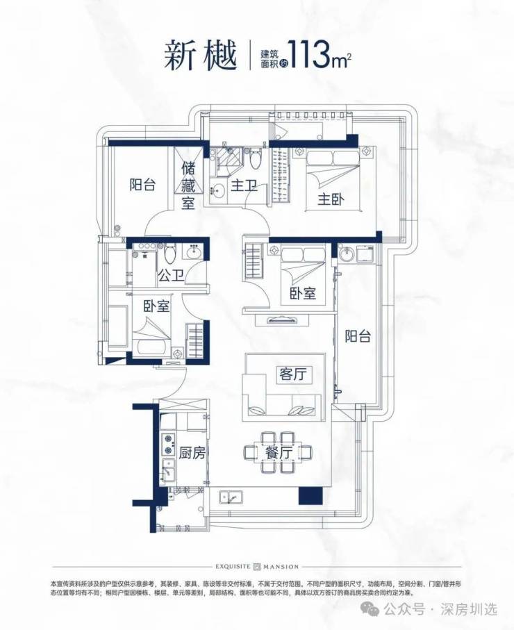 目前91-113㎡户型已经出炉,123㎡户型暂未公布,其中113㎡户型是个亮点,客厅房间基本都是270°转角飘窗采光,使用率高达94%。