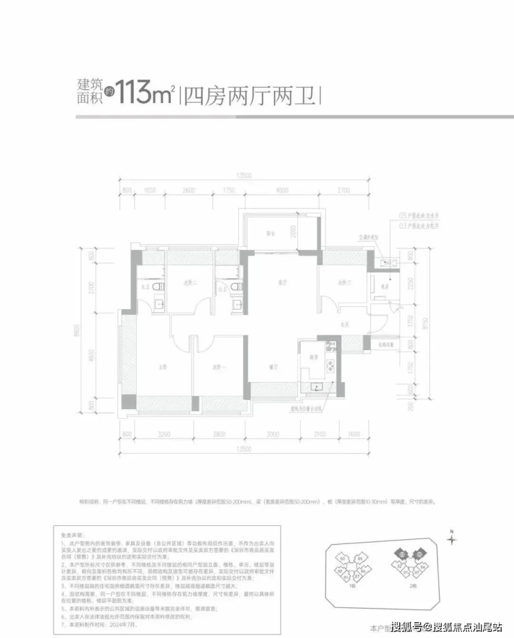 113㎡的4房2厅2卫,设计的竖厅南北通透格局,客厅4米开间,进门独立玄关,4个卧室分别做到了4米/2.8米/2.7米/2.6米的宽度,U型厨房,公卫三段式分离设计,得房率约:95%(包含赠送),阳台主朝西北或东北向,看科学公园景观。