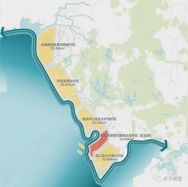 前海,港澳大湾区发展的战略重地之一,规划打造未来城市新标杆、新引擎、新中芯,并不断扩容加码,新增宝中及大铲湾、大小铲岛,大铲湾腾讯科技岛+前海金融总部区+宝中总部商务区等3大产业聚核,执掌未来城市新芯。
