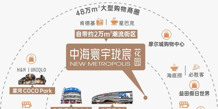 地铁三站到大运,可达星河COCO Park;一杯咖啡的时光,驾车轻松畅达摩尔城购物中心、万科里、万科广场等大型购物中心;约15分钟内潮流商圈任由选择,佳华沙湖旗舰店集中商业(在建中)、锦龙天虹商场、益田假日世界、京基24H开放式潮流商业街区(在建中)、尖莎咀购物中心等。