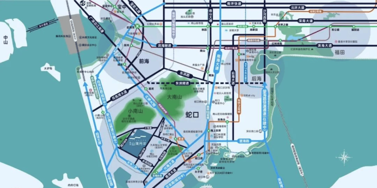 拥有2号线/5号线/12号线三条地铁加持,交通路网四通八达。这里到南山核心各个区域都很近,1站可达太子湾,2站抵达前海和海上世界。