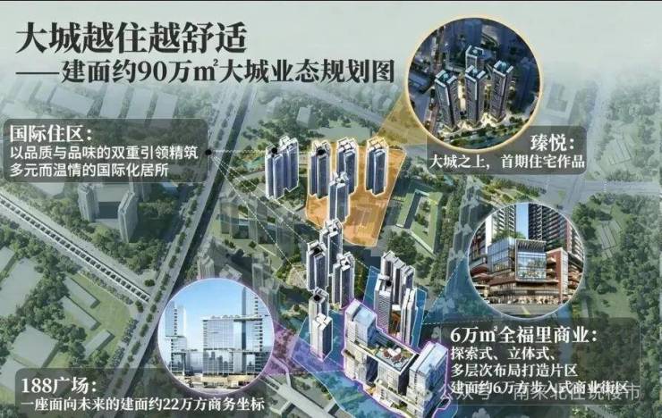 集商务办公、潮流商业、国际住区于一体的建面约90万方超级综合体