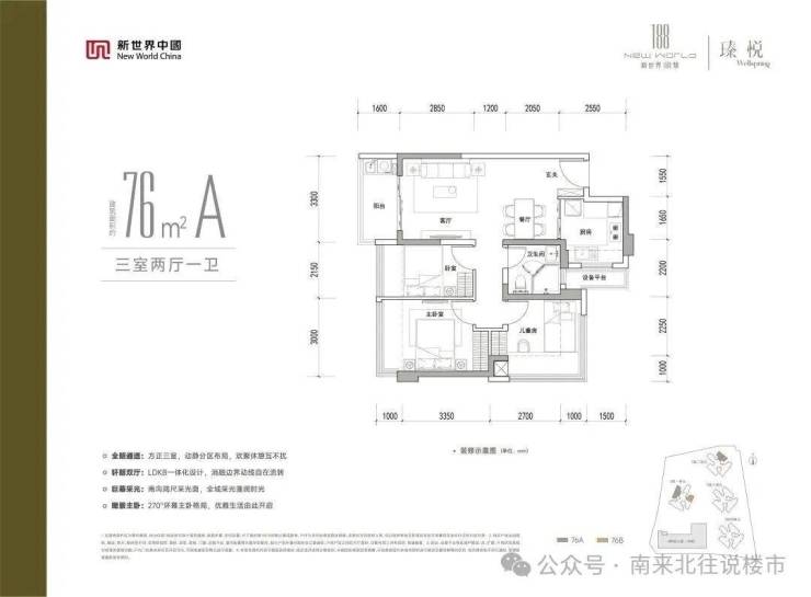 龙岗永湖,新世界新璟曜广场!推广名为新世界188号计划在2026年5月份取证入市,本次将会首推05地块臻悦,面积有76㎡的3房1卫,86㎡的3房2卫,98-114㎡的4房2卫,180㎡的5房3卫户型,目前营销中心,样板房已经开放,对项目有兴趣的朋友可以提前关注,参考周边价格在3.5万左右,当时旁边名居最便宜价格在3.3万左右,参考这个价格也就是总价245万左右可以买个三房