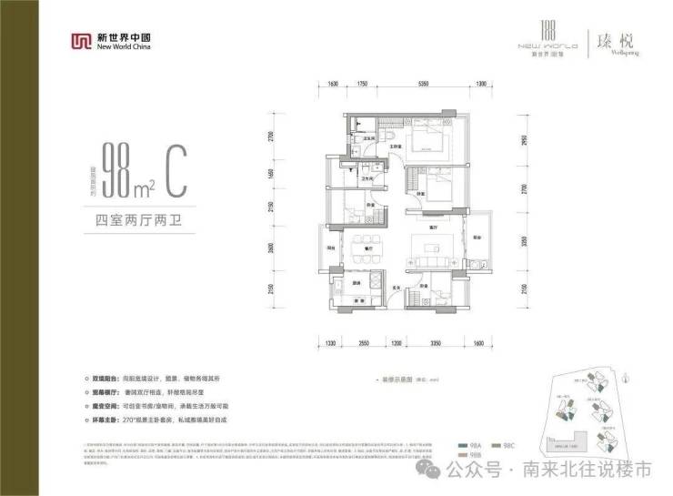 98m²c户型四房预计328万起