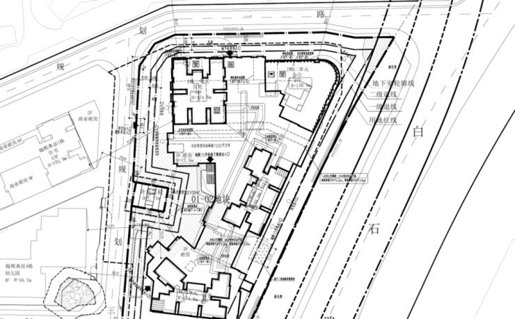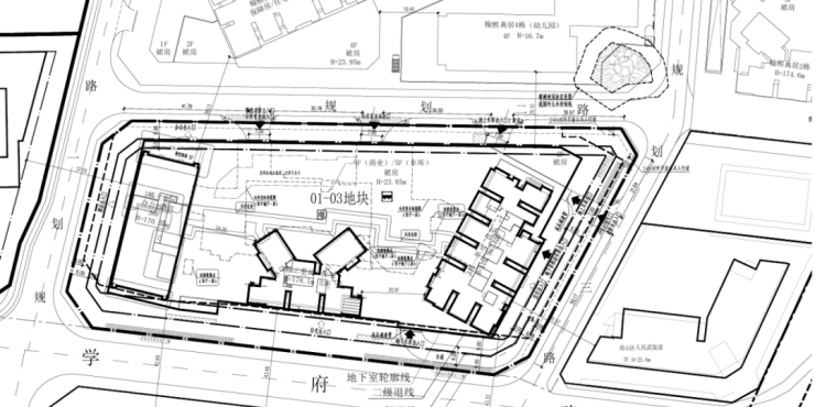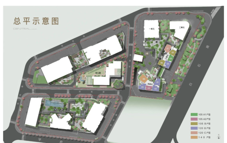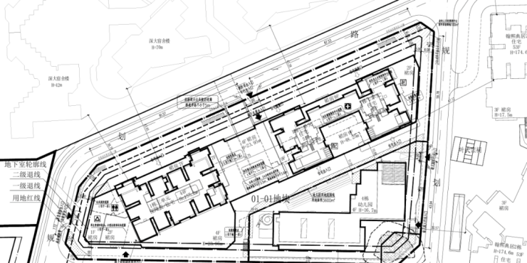 01地块:规划3栋44层、55层、55层超高层住宅(1栋一、二、三单元),以及1栋幼儿园(4栋)。