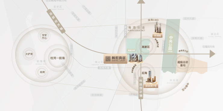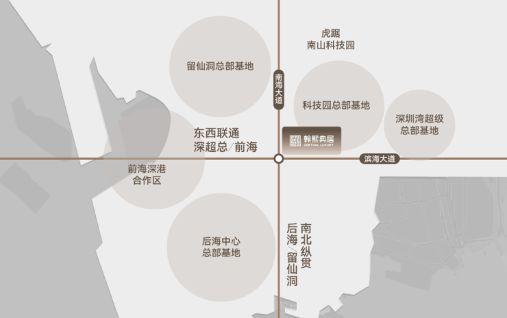 翰熙典居占位深圳经济命脉滨海大道与南北科创主轴南海大道交汇处十字轴心。集萃城市区位、科创、人文、TOD四大中心源点。依托两大科技园、四大总部基地,集总部经济+全球科创中心价值,坐享区域发展利好。
