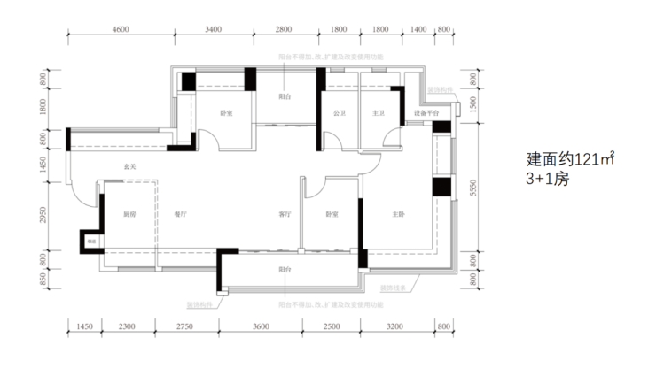 三、建面约121㎡户型:堪比旧规140+㎡户型