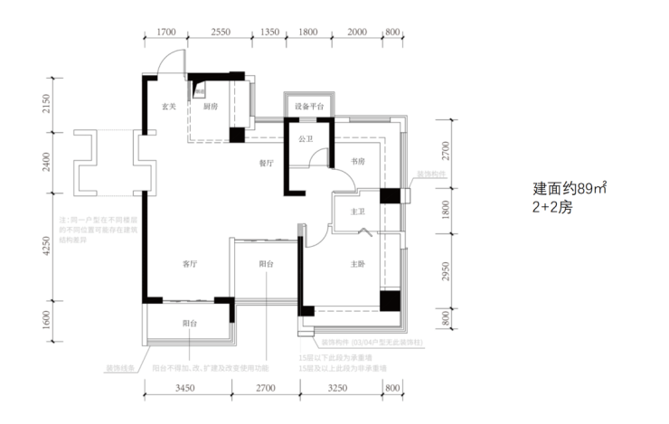 建面约89㎡户型主打“拎包入住”