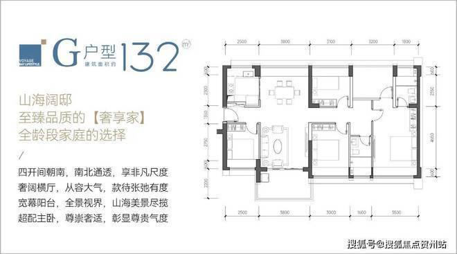 132㎡的5房2厅2卫,仅6B栋02户型,竖厅南北通透,得房率约92.9%,阳台主朝东南向;
