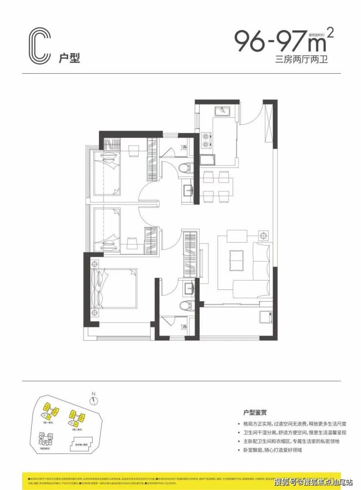 96–97㎡:紧凑三房(双卫)