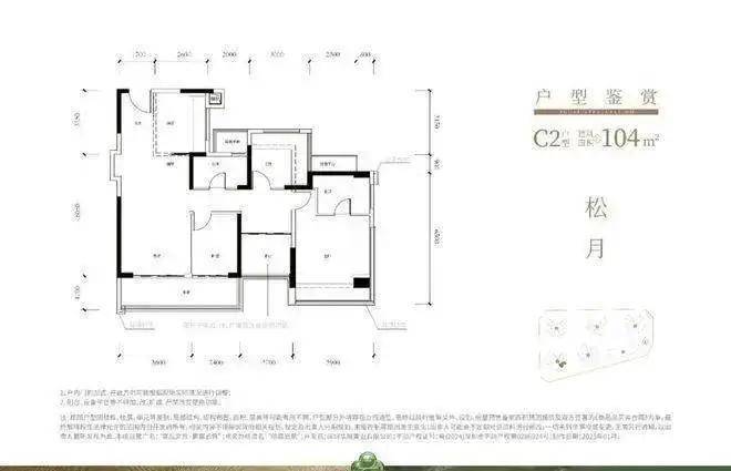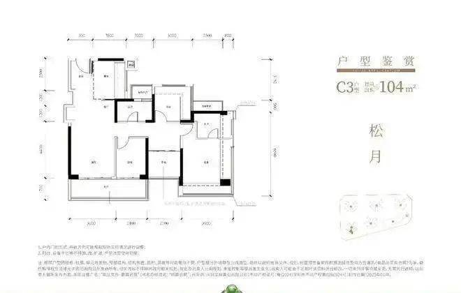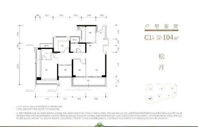 104㎡的4房2厅2卫,设计的是竖厅格局,进门入户玄关,客厅3.6米开间,LDKB一体化,S墙设计预留冰箱卡槽位,四开间朝南,主卧+1个次卧270°飘窗,客厅连接次卧出6米长大阳台,L型厨房,得房率约79.45%(不含赠送),西南或东南朝向。