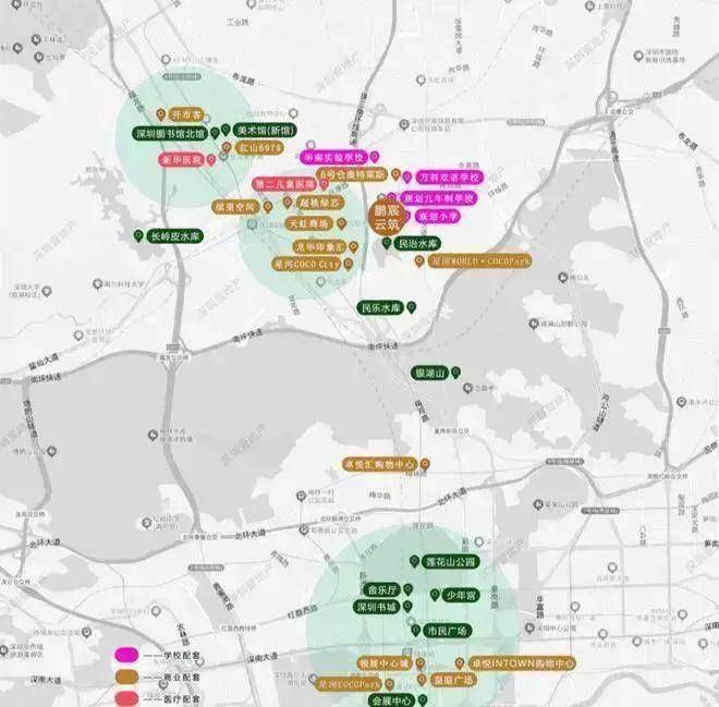 学校配套:项目自带1所12班制幼儿园,北侧规划有一所广东省一级学校建设标准的九年一贯制72班学校待建,据传是深实验学校进驻,根据龙华教育局2024年最新的学区划分,小初学区都是划分在华南实验学校