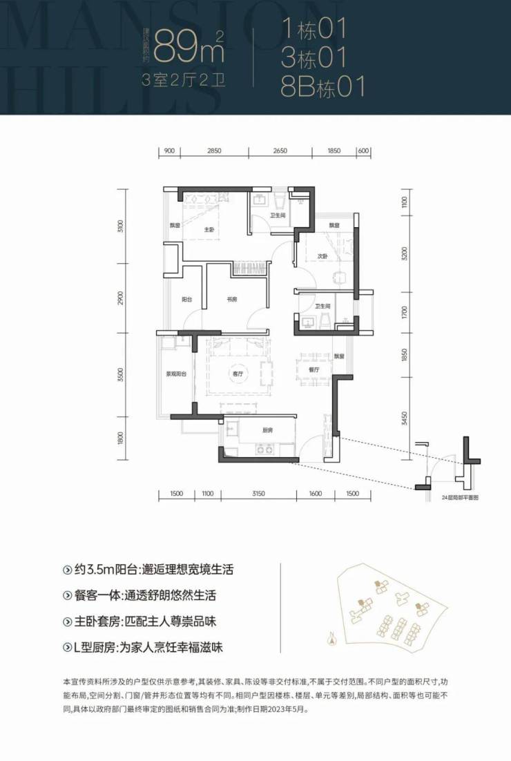 :南北双花园+独立电梯,主卧套间配置衣帽间+270°环幕山景