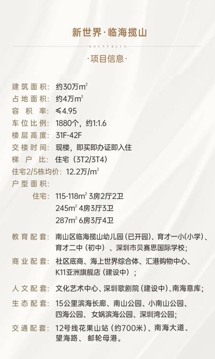 -教育配套:新世界临海揽山幼儿园、育才一小、育才二中、深圳贝赛思国际学校、深圳蛇口国际学校、太子湾国际学校、韩国国际学校、深美国际学校等众多国际学校。