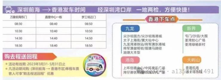 跨境巴士:万象前海东门已开通【前海往返香港】跨境巴士,通行便捷