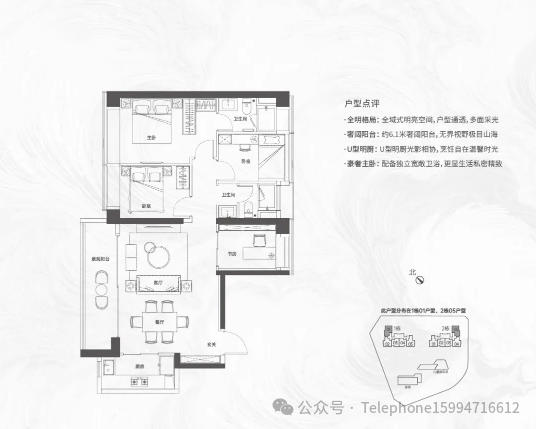 【124㎡的4房2厅2卫】1栋01/2栋05户型,电梯入户送独立公区,横厅南北通透格局,客餐厅6.1米开间,五开间朝南,主卧大套间设计,6.1米长观景大阳台,U型厨房,得房率:72.07%(不含赠送)西北或东南朝向;