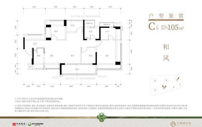 竖厅格局,客厅3.4米开间,三开间朝南,3个卧室分别做到了主卧14.03㎡/次卧8.42㎡/6.74㎡(实测面积,去掉墙体),主卧+1个次卧270°飘窗,得房率约100.8%(包含赠送),西南朝向。