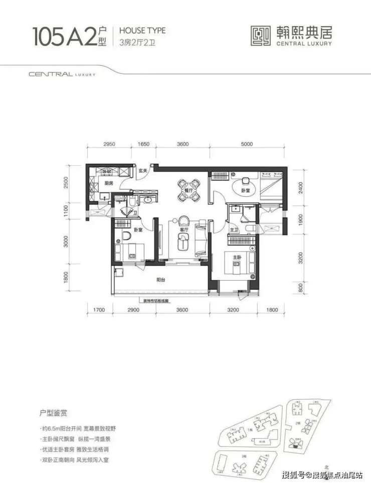 105㎡三房:6.5米南向阳台+U型厨房,总价894万起