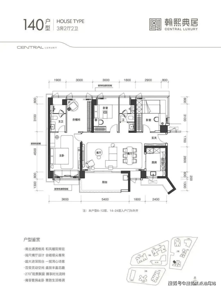 140㎡改善型:32㎡横厅+独立家政间,得房率85%