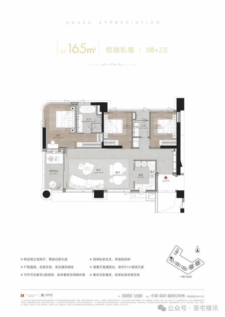 建面约165㎡领袖私域 3房+2卫(T11-01)