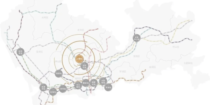 ②深圳都会枢纽的1/13 ,三地铁线交汇(含在建)