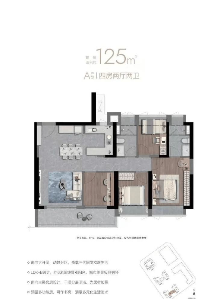住宅产品面积:约67-125㎡2-4房