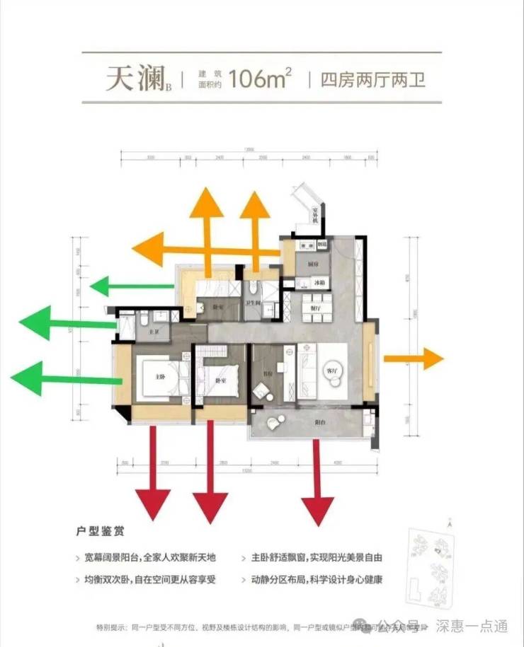 04跟03不一样的地方在于他的主卧次飘窗,主卫,小次卧飘窗朝东南不靠主干道,再就是看学校景观,以及东南早上中午都能晒到太阳,这里就是04比03贵大几万的原因了