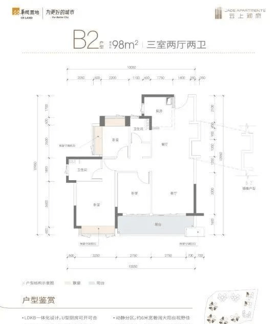 B3户型:MAX方厅设计,客厅4.9米开间,LDKB一体化+X全场景,得房率83.95%,西南或东南朝向。