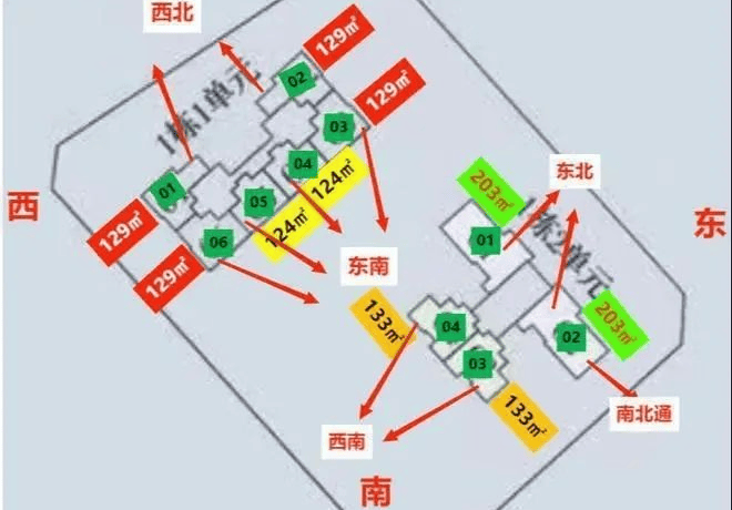 面积:124-203㎡3-4房