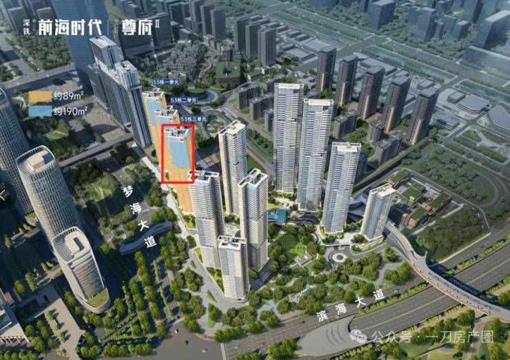 前海时代三期尊府」位于前海桂湾片区南侧,临近滨海大道和桂湾河,在整个前海自贸区内算是住宅的C位,正南侧水廊道公园,东南望南山西南看城市海景。