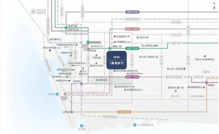 深铁前海时代处于桂湾,桂湾拥有西部最大的地下交通枢纽前海湾站。