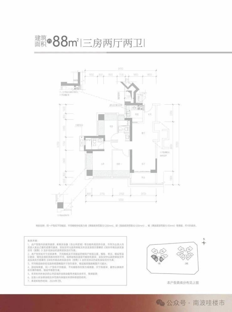 【产品户型】:建筑面积约85-88m²三房两卫、建筑面积约110-114m²四房两卫、建筑面积约113-119㎡四房两卫