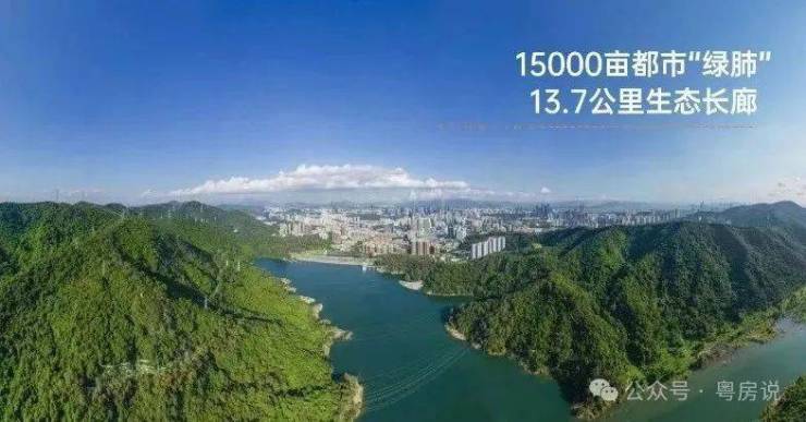 南向,是郁郁葱葱的塘朗山,近1000万平的原生山脉,森林覆盖率达约87%,山高谷深、林茂水长。60%绿化控规,全市第一的天然氧吧,负氧离子含量2万/cm³,是福田中心区的4倍