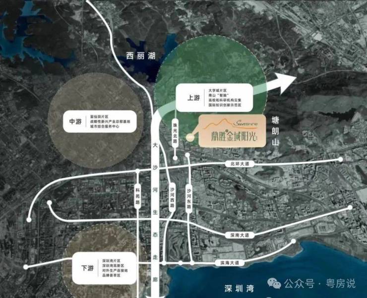 宅藏乾坤,乘山御水:项目南依塘朗山,北面西丽湖,西临大沙河,推窗观山,临街瞰河,不仅营造了豪宅级居住体验,更是南山绝佳风水之地。