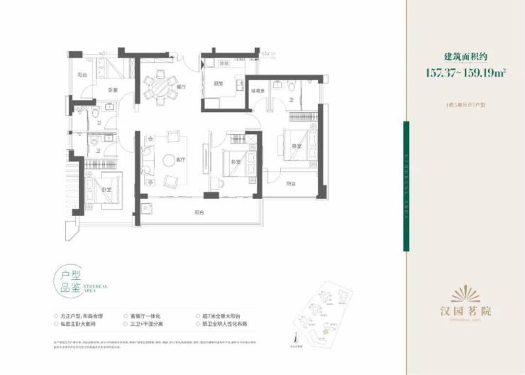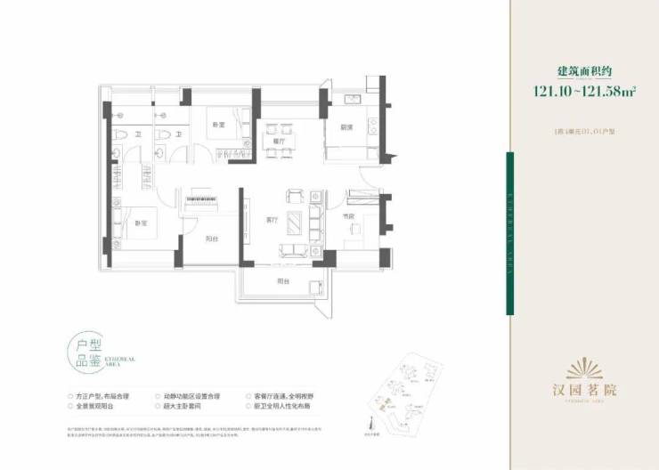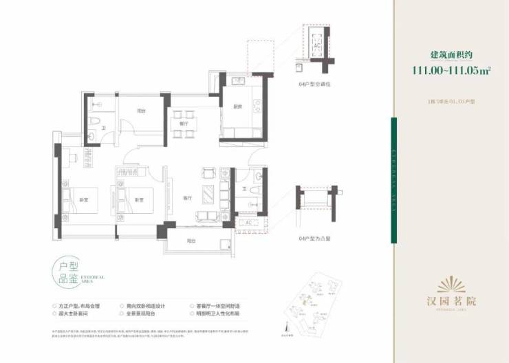 汉园茗院以改善型产品为主,户型面积包括109-112㎡三房两厅两卫、121㎡四房两厅两卫、157-159㎡五房两厅三卫和168-169㎡五房两厅三卫,户型设计非常不错,几乎都有偷面积把空间做大。