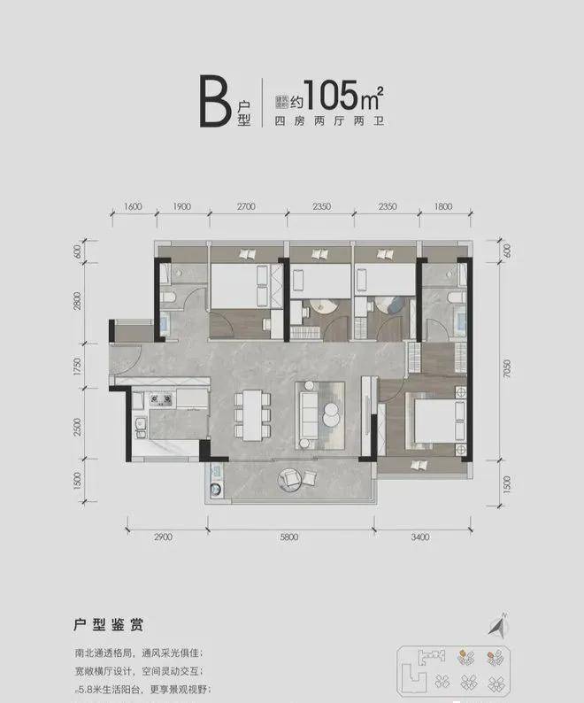 精产品:约89-120平片区唯一全南向3-4房