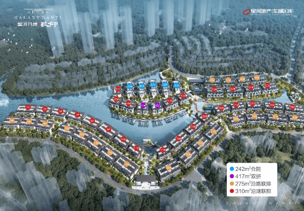 242双拼合院:位置在湖心岛,产品稀缺共28套,下沉式庭院隐私性好,使用面积780平,买三层享五层,五层全采光设计