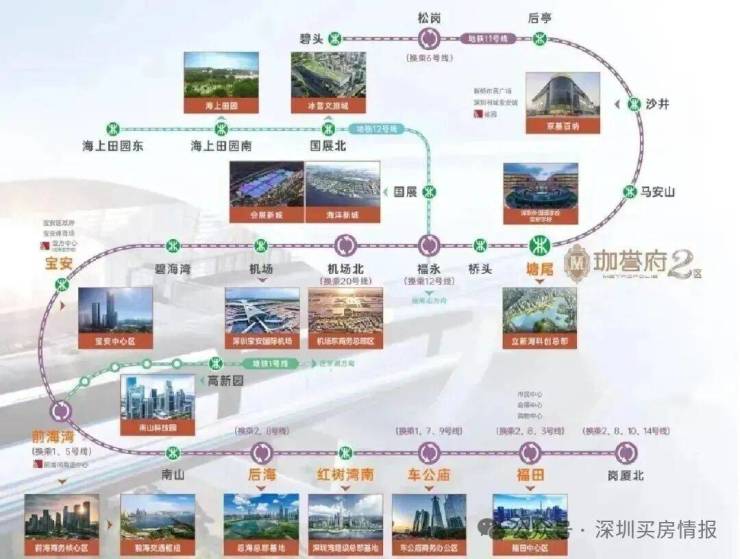 本项目与地铁11号线塘尾站无缝连接,4站到宝安机场区域,6站到宝中,7站到前海,11到车公庙。一小时通达全城。