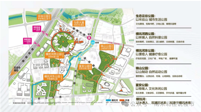 深圳独创规划超3.6km空中连廊,串联5大公园,商业,住区、办公、文化休闲、生态康养等多个特色主题环游路线,超23公顷的生态公园,奢享密度比肩香蜜湖。